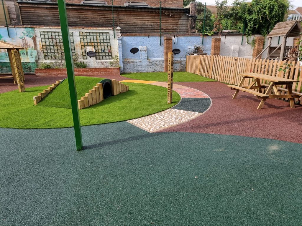 Often clients assume they have to choose one surfacing solution for their area – this is not always the case! If you don’t want a uniform finish, PlaySmart is able to mix and match multiple surfacing solutions so you can enjoy the benefits of several products on-site and the variety it can bring to a finished project.