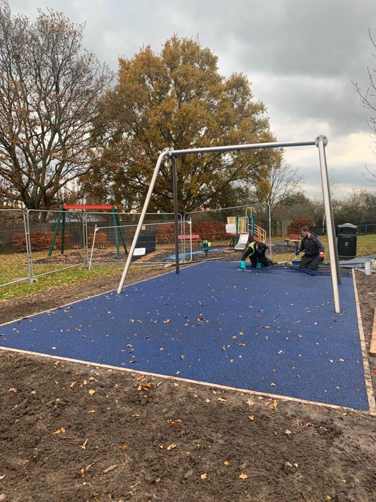 The 8m x 4m swing bay required a Critical Fall Height of up to 1.7m, so we installed our RubbaSmart surfacing at 60mm thickness. The rubber wet pour provides surface protection from falls to reduce the risk of injuries for children using the equipment.
