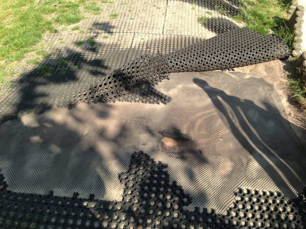 EcoSmart mats are expertly fitted and work with your natural grass surfaces. Therefore, in the right conditions, grass is able to grow through the honeycomb structure of the mats to disguise the black rubber and blend in with a natural play area,